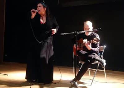 La soirée du samedi s’est poursuivie en musique avec un concert intimiste réunissant Paula Estrella au chant et Horacio Quiroga à la guitare. Le duo a interprété des chansons traditionnelles argentines rappelant l’ambiance chaleureuse du Río de la Plata.