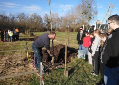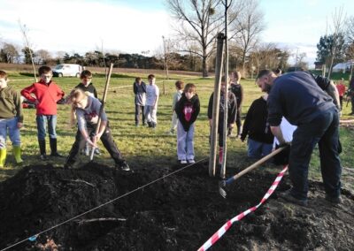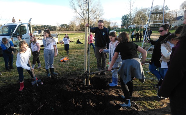 Onze arbres et quarante écoliers. Encadrés par leurs institutrices, Léa Marquez et Mélody Cornieux, et formés par les agents du service technique, les élèves de deux classes de CM2 ont appris à planter des arbres.