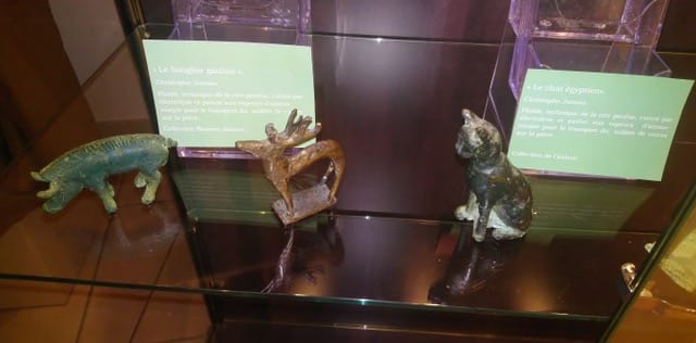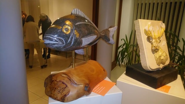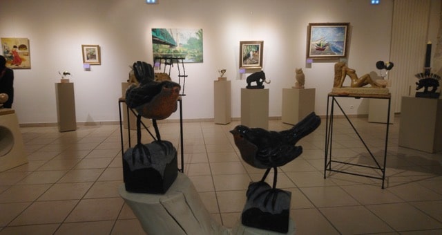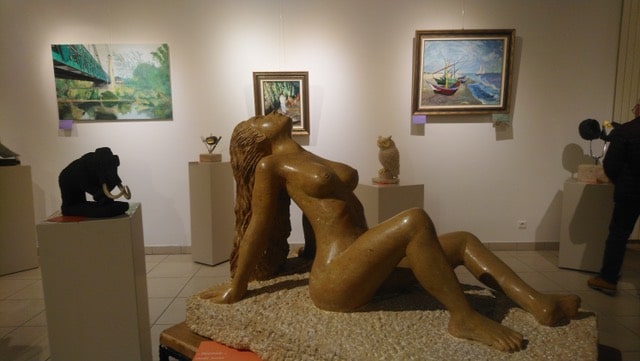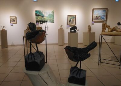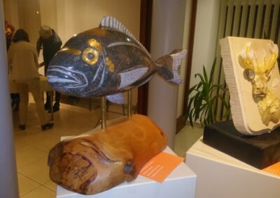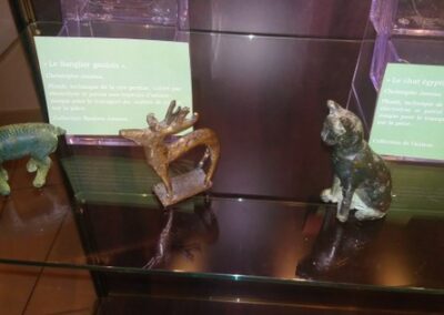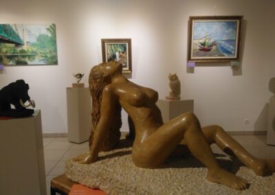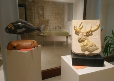 Une même passion, la création artistique. L’un peint et fond les métaux, l’autre sculpte la pierre. Autodidactes et animés par un irrépressible besoin de créer, les deux artistes explorent chacun leur univers. Christophe, bien connu des Châtillonnais pour ses recherches historiques et ses publications au sein de l’association Castellio, révèle ici une autre facette de sa personnalité. Peintre, il reproduit des tableaux de grands maîtres mais aussi des compositions personnelles. Il sculpte aussi à partir de terre cuite et réalise des moules en cire perdue, donnant naissance à des œuvres en cuivre et plomb inspirées du patrimoine, comme un sanglier gaulois un cerf ou un chat parmi d’autres.