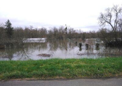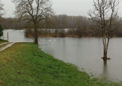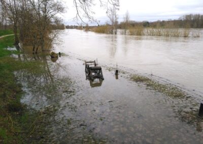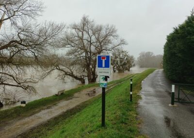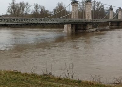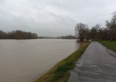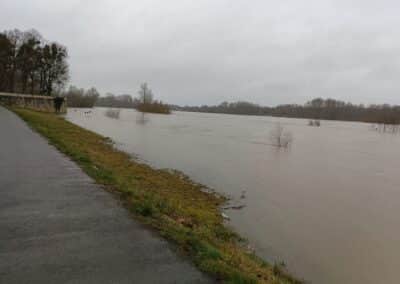 La décrue, enfin. La commune a été globalement épargnée. Seuls des jardins et des champs, dans la proximité de la Loire, ont été inondés. Les jardins de la rue Octave et Renée Montembault sont sous les eaux de même que le parcours de santé devenu impraticable. L’accès à l’île à Gaston est actuellement impossible. À l’écluse de Mantelot, le treuil a les pieds dans l’eau.