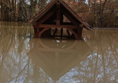 Du côté de la rivière l’Éthelin, le lavoir du Pont Élie se retrouve entièrement submergé, l’eau atteignant quasiment sa toiture. Rue du Glacis, les riverains ont dû composer avec le bruit assourdissant du courant.