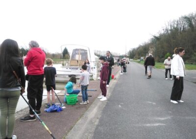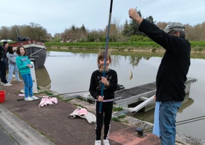 C’est au port de plaisance le long du canal que les bénévoles avaient préparé l’amorce et installé les cannes afin qu’une quinzaine de jeunes pêcheurs s’adonnent rapidement à cette nouvelle activité, pour eux. En ce début d’après-midi, les poissons ne semblaient pas très présents, au grand regret de certains enfants, impatients de voir leur bouchon s’enfoncer.