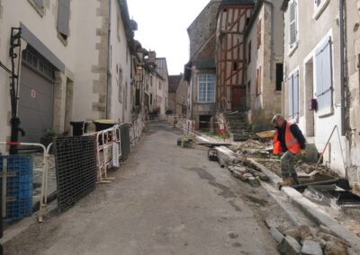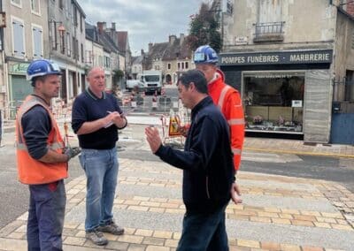 La rue de l’Hôtel-de-Ville, entre la mairie et la place Clemenceau, sera ouverte à la circulation dès le 28 octobre, après la pose des pavés qui doit être suivie d’un temps de séchage. Dans la foulée, une portion de la rue Franche sera temporairement fermée afin de permettre la création d’un nouveau pavement au passage piéton devant la mairie.