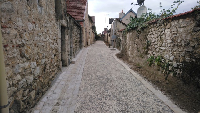 La réfection de la ruelle aux Pêches est, quant à elle, terminée. Bordée de nouveaux pavements, la chaussée a bénéficié de l’enrobement d’une grave-émulsion constituée de granulats élastomères et d’émulsion connus pour leur résistance et leur caractère écologique.