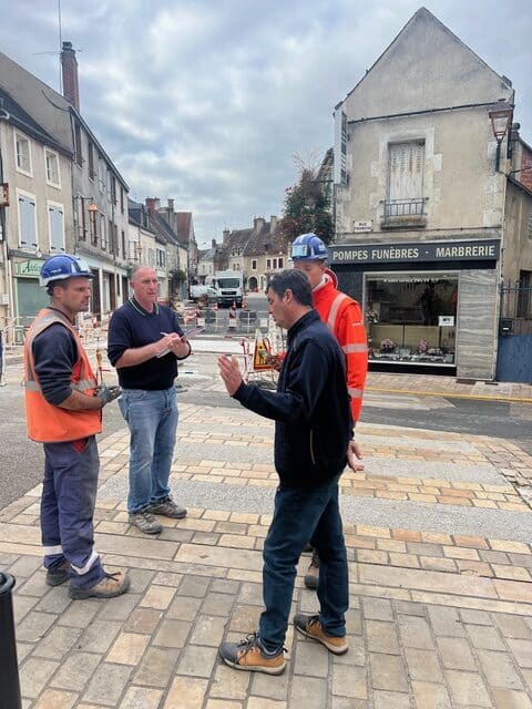 Deux ans après la première réunion publique du 7 novembre 2023, où le maire Emmanuel Rat a exposé avec le maître d’œuvre, Didier Dupont, le programme des nouveaux aménagements du centre-ville, les travaux arrivent à leur terme. Ils avaient débuté par l’enfouissement des réseaux quelques semaines plus tard, avant de reprendre en mars 2025 avec la deuxième phase des travaux en surface.