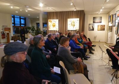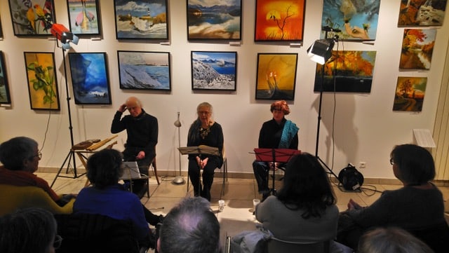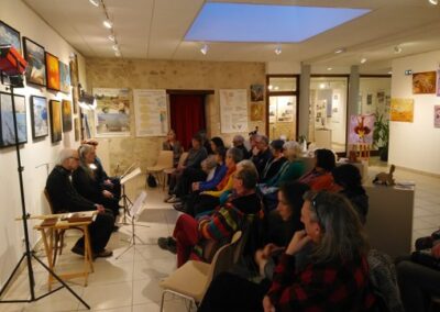 Présente lors de la soirée, l’autrice a écouté les comédiennes Sabine Peyrard et Anna Desreaux lire plusieurs extraits de l’ouvrage. Le musicien Andras Vigh a apporté des respirations musicales entre les textes, mêlant sons de flûte et de guimbarde devant une trentaine de personnes.