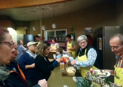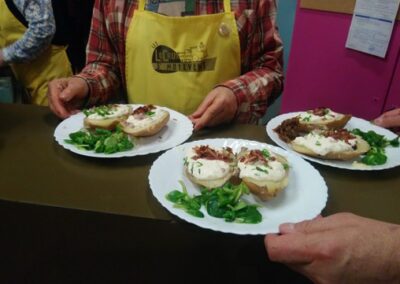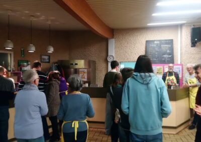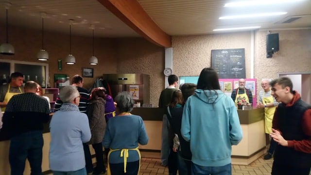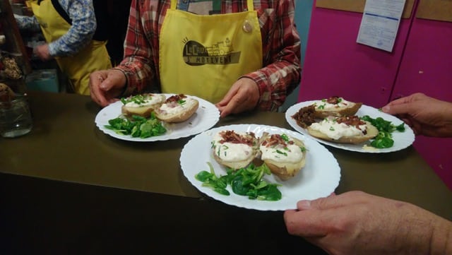 Accompagnés d’une douzaine de bénévoles reconnaissables à leur tablier jaune floqué au nom de l’association, ils s’étaient mobilisés pour préparer et servir les nombreux visiteurs venus participer à l’événement. Au menu, de généreuses pommes de terre chaudes garnies au choix de fromage blanc, ciboulette et échalotes, de lardons ou de compotée d’oignons, le tout accompagné d’une salade fraîche. En dessert, de délicieuses crêpes au chocolat ou à la confiture ont régalé les plus gourmands.