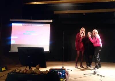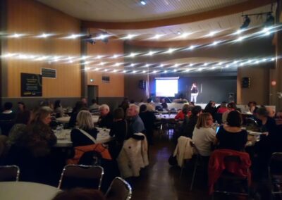 Mais la soirée ne se résumait pas au repas. Elle s’est aussi poursuivie en musique avec le traditionnel karaoké, qui ne manque jamais d’adeptes prêts à pousser la chansonnette. Pierre Marlette, fidèle au poste, a pris les commandes de l’animation musicale, invitant les participants à monter sur scène, en solo, en duo ou en groupe. Quelques membres bien connus de la chorale châtillonnaises ont d’ailleurs repris en chœur Dans les yeux d’Émilie.
