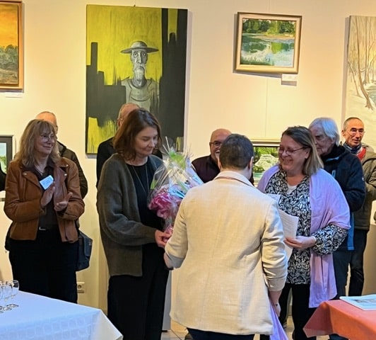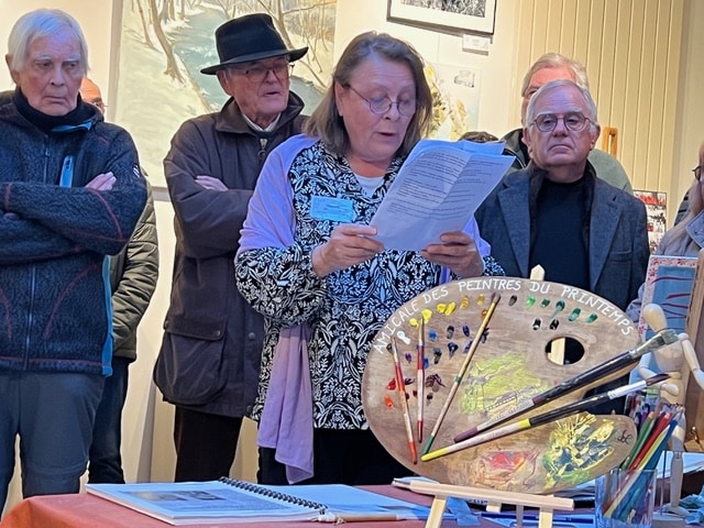 Catherine Letonnelier, adjointe au maire, a salué le dynamisme de l’association et remercié ses membres pour leur investissement fidèle depuis de nombreuses années avant de préciser, avec émotion, qu’elle présidait, là, son dernier vernissage en qualité d’adjointe à la culture. Un bouquet de fleurs lui a été remis par l’amicale des peintres en reconnaissance de son engagement pour l’art et les artistes qu’elle a soutenus et défendus tout au long de ses mandats d’élue.