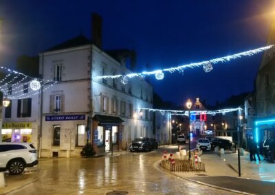 Cette année, 1.500 mètres de rideaux scintillants illumineront la ville et ses rues. Devant la mairie, le traditionnel chalet en bois surmonté d’un « Joyeux Noël », a été installé. Plusieurs carrefours, celui de la route de Santranges et de Pierrefitte, ou encore la place Clemenceau bénéficient de nouvelles illuminations.