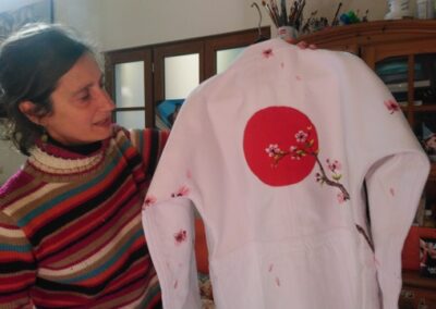À la Tourelle, au fond d’une venelle du centre-ville, Gabriela Gonzalez partageait son regard de la ville qu’elle peint sous tous les angles avec grand talent. Une maison à colombages, un portail, un encadrement de fenêtre, tout attire l’oeil curieux de cette artiste qui sait saisir l’intérêt du moindre détail qui fait de notre environnement le bonheur du quotidien. Sollicitée par les judokas d’Ouzouer-sur-Trézée, elle a décoré leur dojo de scènes japonisantes avant de peindre un kimono qui sera vendu au profit d’une oeuvre caritative.