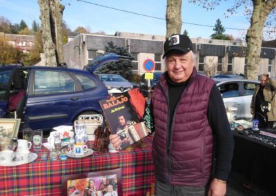 Au détour d’une allée, on croise Pierrot, un Parisien d’origine, désormais installé à Gien, qui propose une pochette de l’accordéoniste Jo Privat ou une photo encadrée d’André Verchuren, dédicacée par l’artiste. « Je suis un grand amateur d’accordéon et de danse, j’ai vécu 56 ans à Paris », confie-t-il. « J’ai fréquenté le Balajo, rue de Lappe, dans le XIᵉ arrondissement, un lieu mythique où je me rendais régulièrement de 1962 jusqu’à la fin des années 1970. J’en garde des souvenirs impérissables, des rencontres inoubliables, connues ou anonymes. »