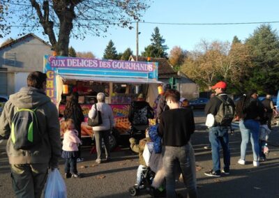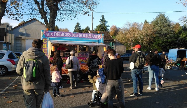 Au milieu des stands, les flâneurs de ce mardi férié pouvaient s’arrêter à celui de la restauration où saucisses, merguez, andouillettes et frites côtoyaient les crêpes et les barbes à papa proposées par les Délices des gourmands avant un tour au manège, passage obligé des petits.