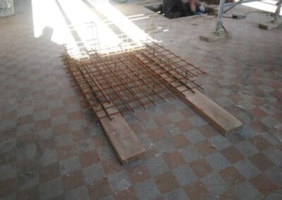 Ces excavations ont été aménagées pour accueillir des massifs d’ancrage en béton armé, d’un volume d’un mètre cube chacun. Coulés, ces blocs vont permettre de soutenir les poteaux destinés à porter la future charpente.