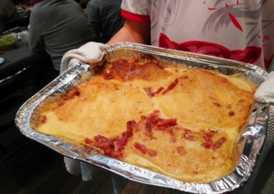 Pas moins de 180 convives ont répondu à l’invitation du club de football. À la manœuvre en cuisine, Jimmy Voss a concocté une savoureuse tartiflette maison, dont la réputation n’est plus à faire. Pour satisfaire tous les appétits, près de 80 kilos de pommes de terre ont été nécessaires ! Un chiffre qui en dit long sur l’ampleur de la préparation et le succès rencontré. Pour ceux qui rechignaient à sa dégustation, d’excellentes lasagnes avaient été préparées.