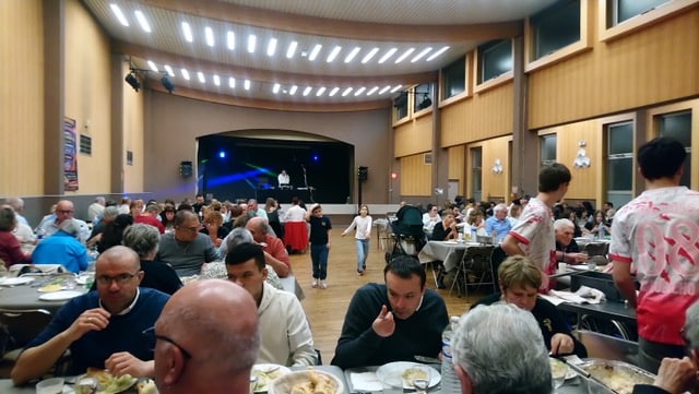 Douze bénévoles dont de nombreux jeunes ont assuré un service efficace et souriant, contribuant largement à la réussite de la soirée. La tartiflette était accompagnée d’une salade, avant de laisser place à une généreuse part de tarte normande en guise de dessert. Le tout dégusté dans une ambiance conviviale et chaleureuse.