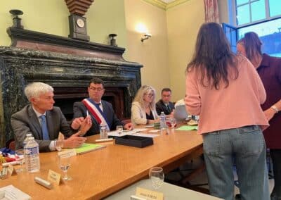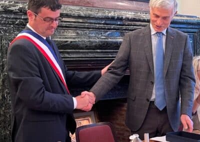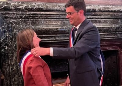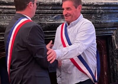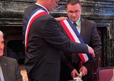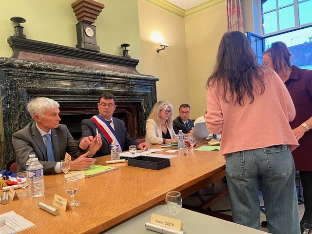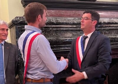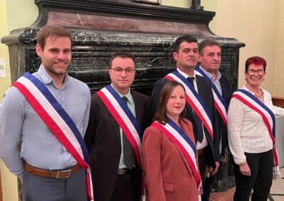 La suite de cette soirée d’installation s’est poursuivie par l’élection des adjoints. Le maire a proposé au vote, une liste de cinq adjoints comportant comme premier adjoint Éric Bedu suivi de Rosemonde Sinzelle, Daniel Gaugué, Virginie Binstzik et Donatien Blanchard. Élus par vingt voix et trois bulletins blancs, ils ont été chaleureusement applaudis par la salle avant que Vincent Gitton ne remette son écharpe d’adjoint à chacun.